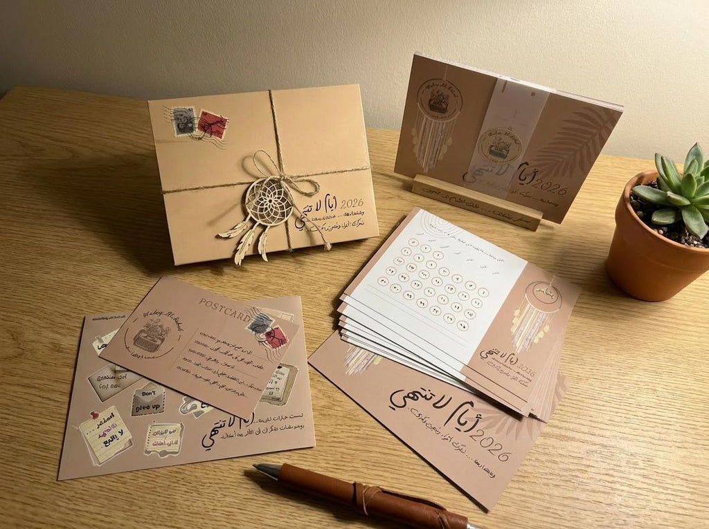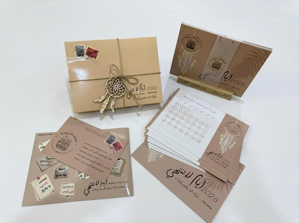 يأتي تقويم «أيام لا تنتهي» داخل علبة أنيقة مستوحاة من شكل الطرد البريدي،
